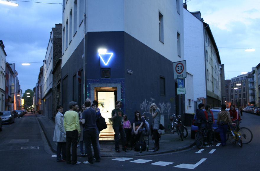 Parallel zur Art Cologne 2009 sollte ein neues Kunstfestival in Köln zum allerersten Mal das Licht erblicken: Hug me, Heimlich. 25 junge, zumeist unbekannte Künstler und ein Singer-Songwriter bekamen hier über 5 Tage lang die Gelegenheit sich der Öffentlichkeit zu präsentieren. Zwei ungewöhnlichen Räumlichkeiten, das sogenannte "Haifischbecken" im Kölner Filmhaus und das Dreieck, eine längst vergessene und seit Jahren stillgelegte Kneipe in der Kölner Nordstadt boten insgesamt 150m2 Fläche für Malerei, Illustration, Grafik, Skulptur, Installation, Fotografie und Musik. Zündstoff für diese Initiative war ein im Frühling gestarteter Aufruf aus dem sich ein allumfassendes, genreübergreifendes Programm ohne thematische Eingrenzung zusammenstellen ließ. Wer die Hug me - Botschaft bekam wurde ermutigt seine Kunst einzureichen. Wer sie nicht bekam war dennoch gefragt: Email weiterleiten, Aufruf weitergeben, Nachricht weitersagen. Aus diesem Schneeballsystem sollten sich auch die nächsten Ausgaben des Festivals speisen, ohne das Ausmaß jemals erahnen zu können ...